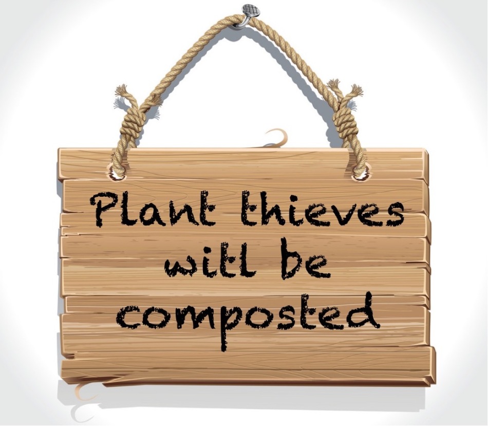 Plant thievery when compared with serious crime is minor, but more prevalent than one might expect. An article in The Laidback Gardner titled “Keeping Plant Thieves at Bay,” (March 12, 2018; Source Victor Kerlow) claims that one in seven British households experience plant theft in the course of a year. Decades ago and across the ocean in Lansing, Michigan I remember my mother showing me two holes in the ground where she had planted azaeleas, now simply two empty holes left by the thief who absconded with her azaeleas. More often than not though, thieves do not dig up plants, but run off with potted ones as can be seen in the video below.