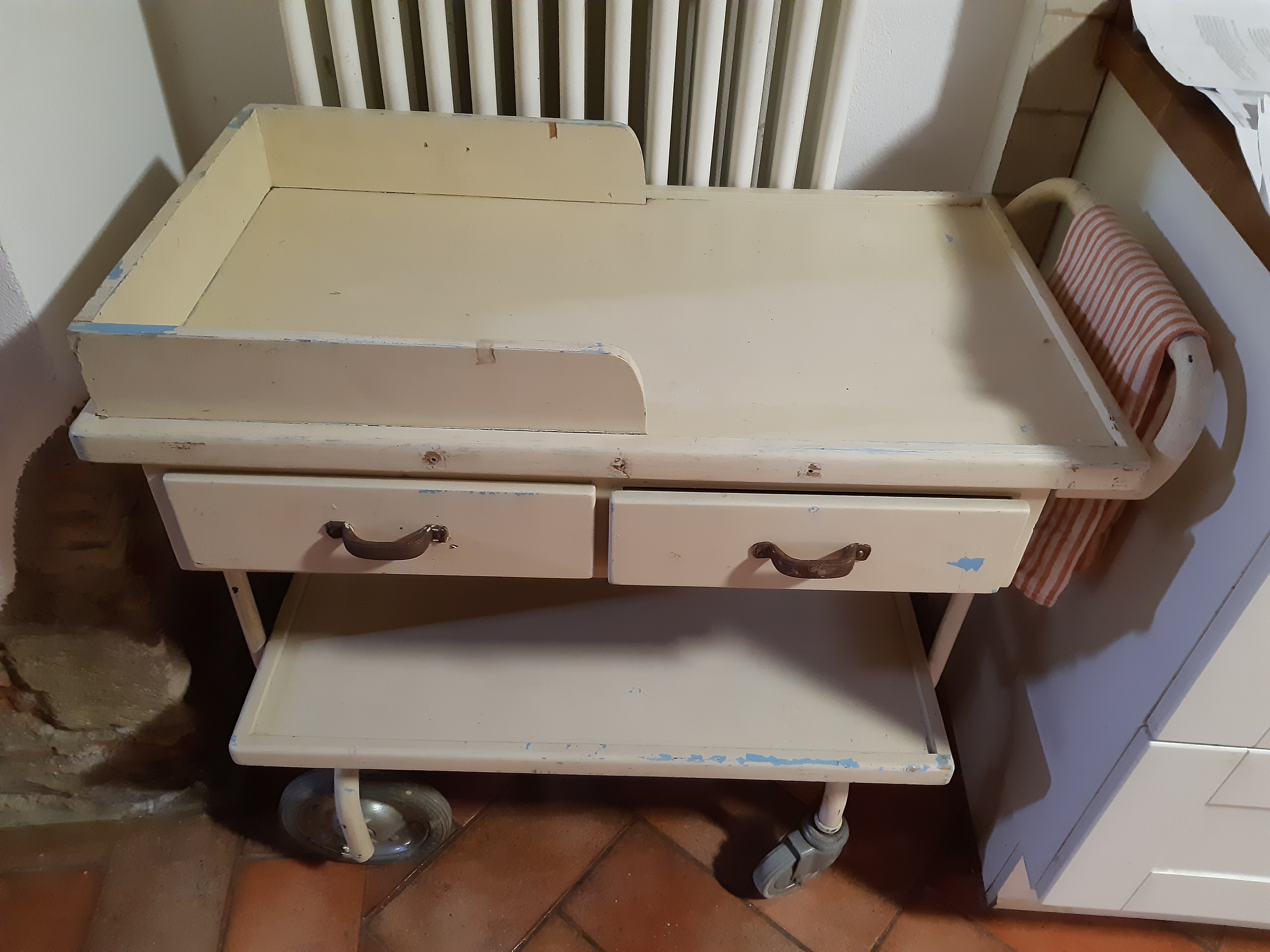 So we are able to get along, not entirely comfortable though not terribly uncomfortable either. But we have been plagued with breakages in our last weeks here: the dishwasher stopped working and we feared it would need to be replaced, especially after we learned it was a 2001 model. But a clever repairman got it going and we were assured it could probably limp along for a while. Then we lost heat and faced the spector of having to replace the boiler, but, sigh of relief, the problem turned out to be in the plumbing and it too was repaired. A wall left blank after a painting was removed revealed a stained, somewhat punky area. Fearing a serious water problem, we called Emmanuel, who had remodelled our guest bathroom and was our favorite fixer of all things. He scraped off the outer surface of plaster and determined it was just a superficial problem, easily repaired And today we found a significant puddle of water in the kitchen, developed in the brief time since Terry and I had fixed our lunch there. An emergency call to the plumber (who had just been here the day before to repair the boiler problem) went unanswered.–he was no doubt taking a lunch break and unavailable. So next a phone call to Emmanuel explaining the new development and he hurried through his own lunch to come and take a look. More kudos to this incredible workman as he identified the problem and promised to fix it.